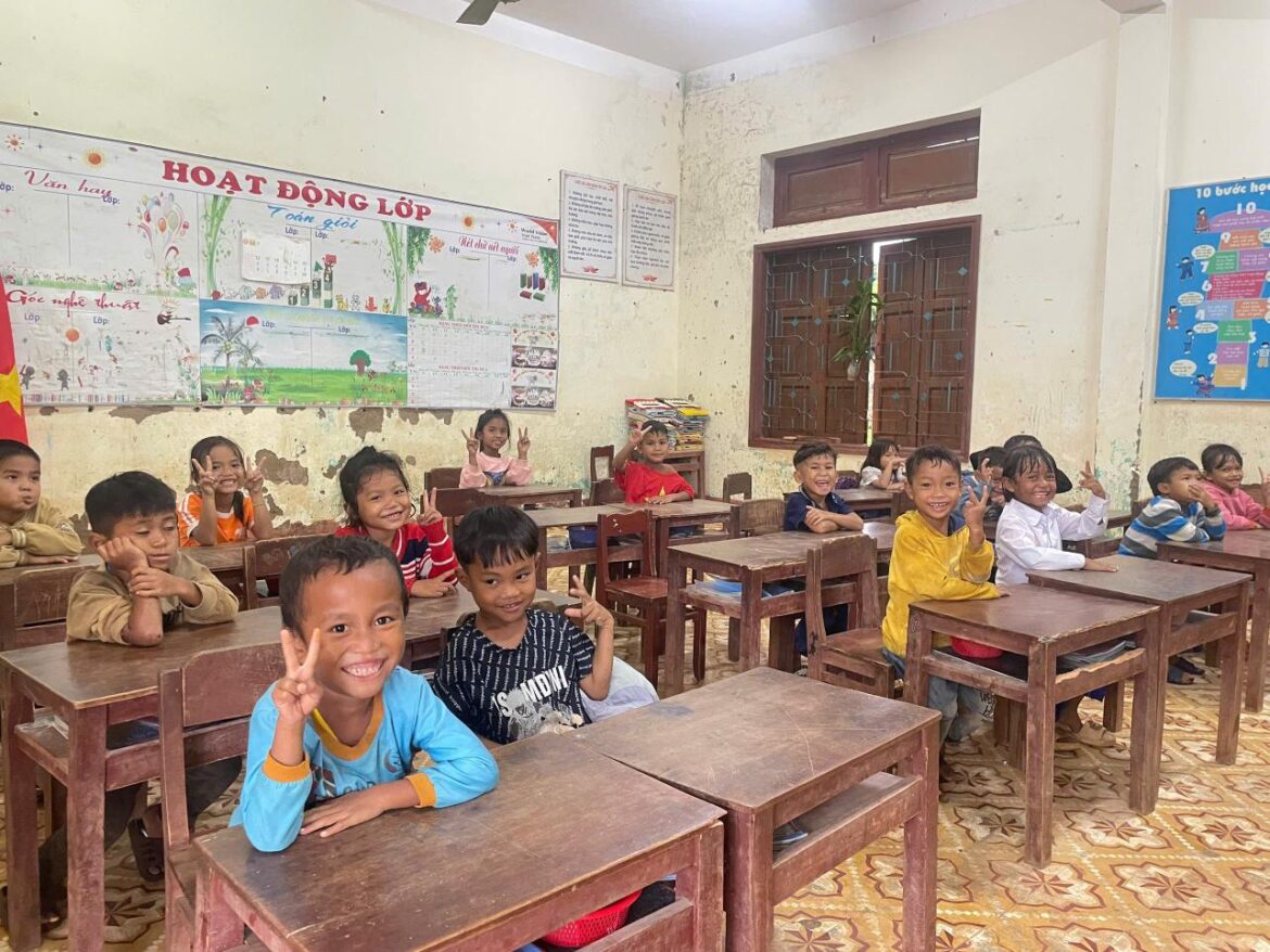 Un aula en una escuela de la comuna de Khe Sanh, donde el equipo de voluntarios entregará los regalosEstos paquetes cuidadosamente planificados están diseñados para cubrir tanto las necesidades inmediatas como la recuperación educativa, e incluyen: